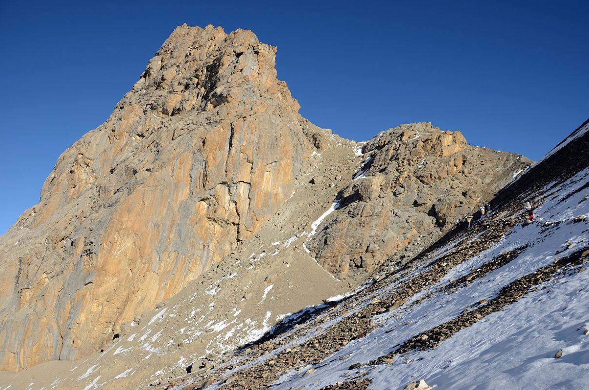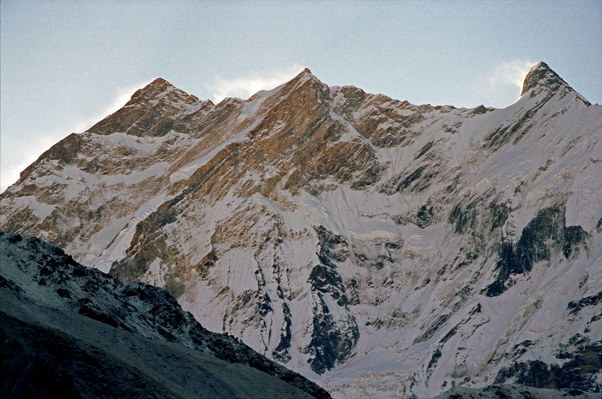 The first ascent of Annapurna by the 7.5 km long East Ridge was completed on October 24, 1984 by Swiss climbers Norbert Joos and Erhard Loretan. They descended from the summit by the historic route on the Annapurna North Face.
